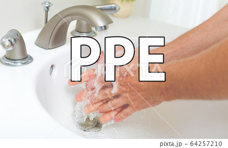 PPE theme with a person washing their hands