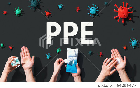 PPE theme with viral and hygiene objects