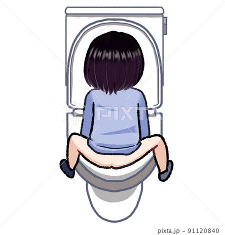 後ろ向きでトイレに座る子ども トイレトレーニングのイラスト素材