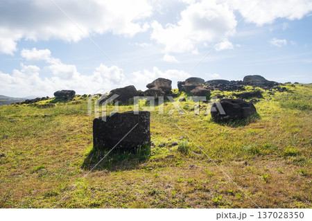 アフ・ビナプ、No.2遺跡の倒されたモアイ像群、イースター島