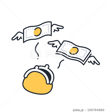 がま口財布からお金が飛んで無くなるシンプルなベクターアイコンイラスト素材