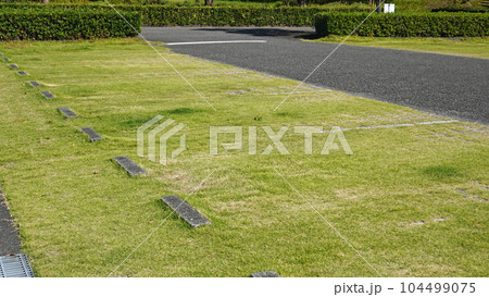 芝生の駐車場と公園の斜面