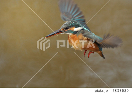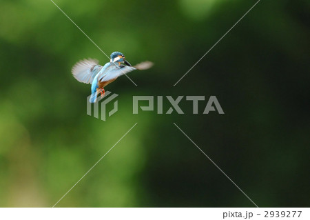 獲物を見定めるホバリング中のカワセミ