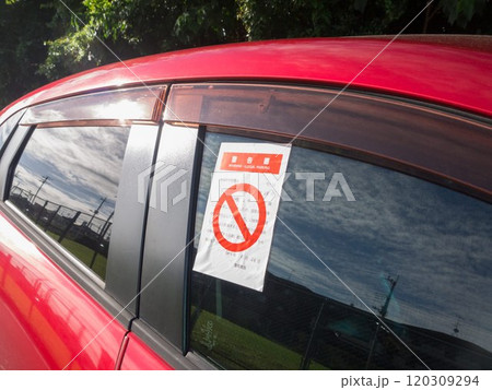 フロントガラスに付けられた駐車違反のシール