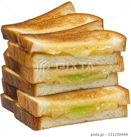 Toasted Sandwich Layers with Melting Cheese and Fresh Green Apples in Close-up View