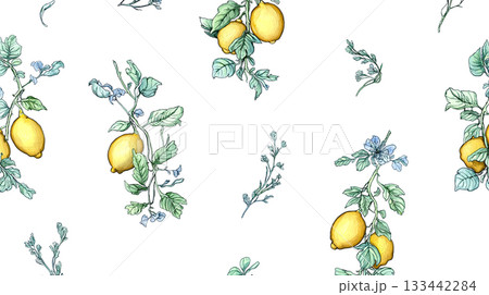 爽やかなレモン柄の壁紙風アート素材
