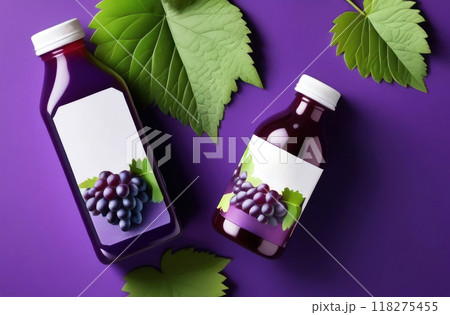 Experience the rich and vibrant look of grape juice bottles set against a striking purple backdrop