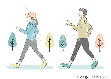 ウォーキングする中年の男女のイラスト