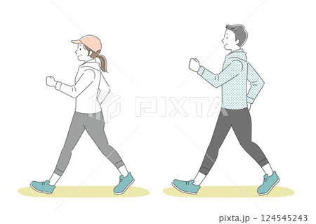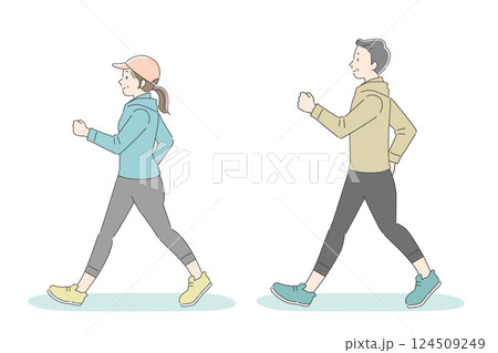 ウォーキングする男女のシンプルイラスト