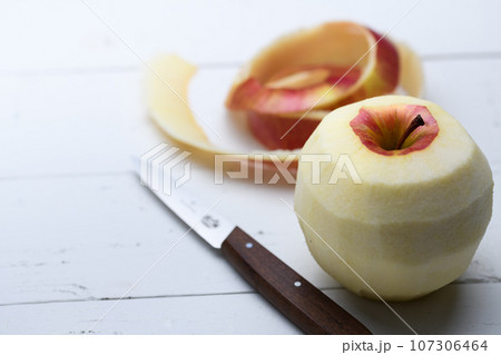 りんご 秋のフルーツの王様 りんごの皮をむく( リンゴ ) 林檎 ( 白板バック )