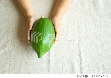 半分にカットした白いかぼちゃ(伯爵かぼちゃ) 夏野菜の手描き水彩イラスト素材