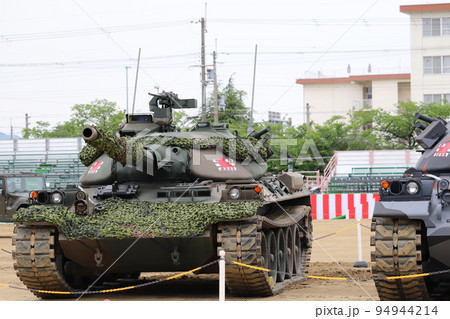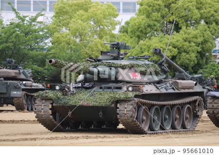 陸上自衛隊の74式戦車のアップ
