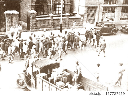 古写真 1937年 日中戦争中の上海 捕らえられた中国軍の便衣兵