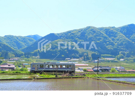 田舎の駅に停車しているローカル線のワンマン列車