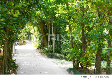 沖縄 本部町海へと続く備瀬のフクギ並木