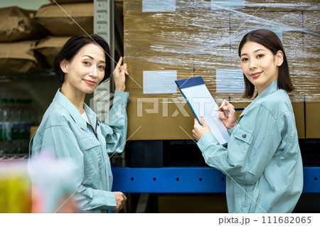 倉庫で確認する作業員の女性