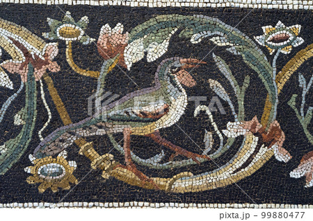 Roman mosaic tiles. Ruin of ancient roman floor art.