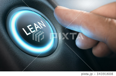 Lean thinking concept, Person using computer in cafe with lean thinking icon on virtual screen.