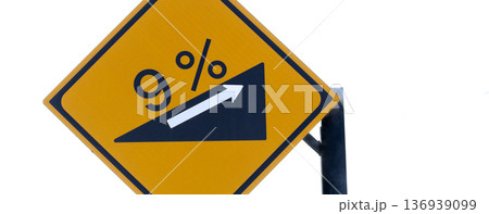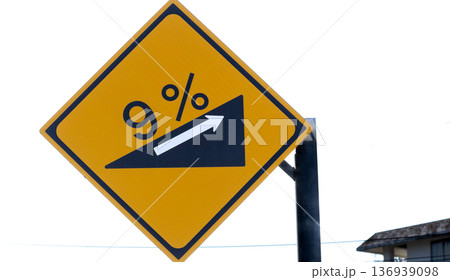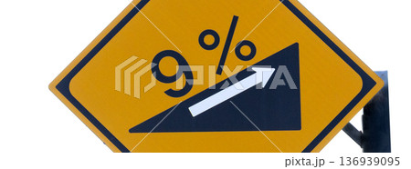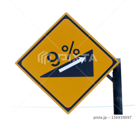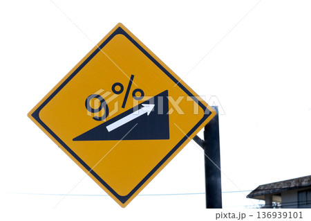 白バックに9度の傾斜角があるという注意の標識