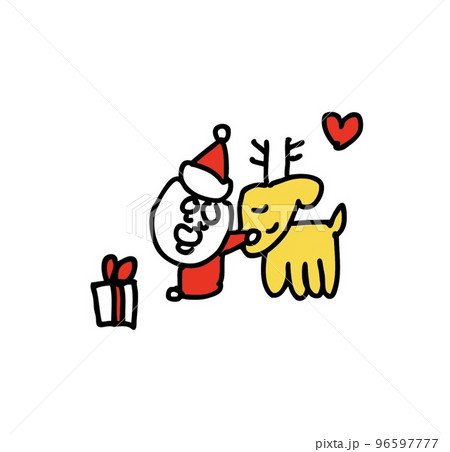 サンタクロースとトナカイ 抱擁 ハート プレゼント