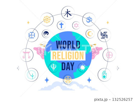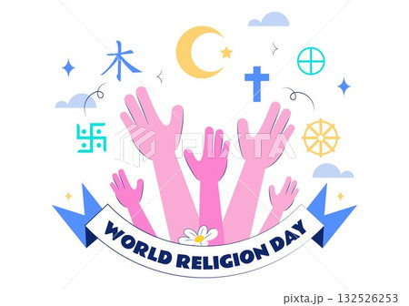 World Religion Day Background Illustration for Social Media Landing Page Design