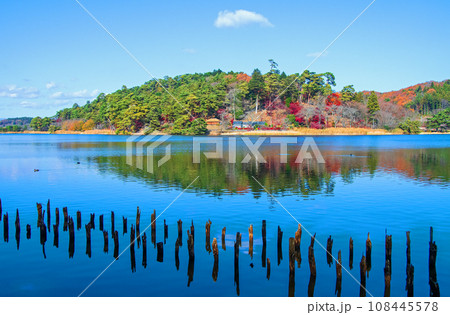 福島県 白河市 国指定史跡 名勝南湖公園の秋 御影の島
