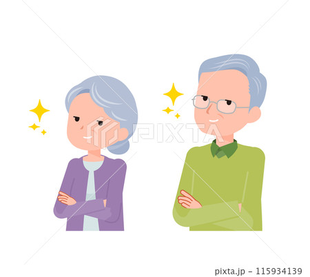 老人シニア夫婦男女。自信満々なドヤ顔。