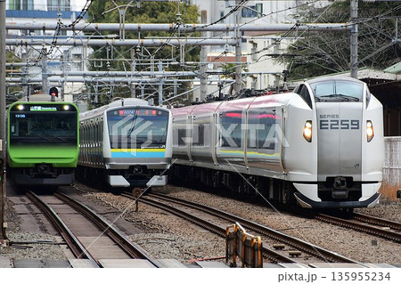 並ぶE235系山手線E233系マリC3編成房総色E259系成田エクスプレス