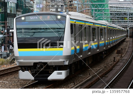 中央線から総武線へ転線するE233系0番台マリC3編成 房総色 東京総合車両センター出場