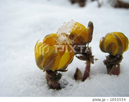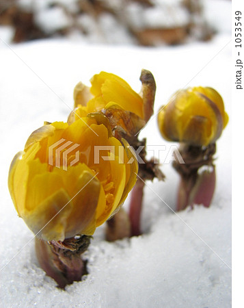 【花素材】雪から顔をのぞかせる福寿草【長野県】