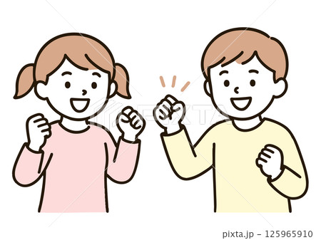 ガッツポーズをする笑顔の小学生男女