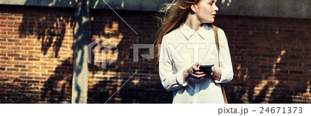 Casual Cheerful Girl Alone Outdoor Recreation Concept