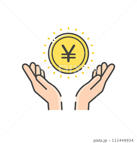¥の文字とコインを持っている人の手のアイコン- 日本や中国などのお金・円や元のイメージ