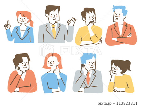 肘をついている人たちのセット_色