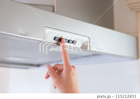 換気扇のスイッチを入れる主婦の手