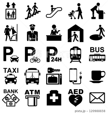 駐車場・給油・レンタカー・アイドリングストップ等、車に関係した様々なアイコンのセット