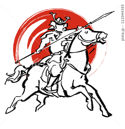 疾走する馬と馬上の侍-カラー