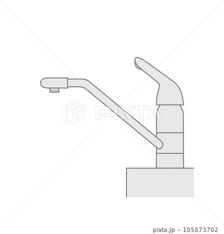 先端の泡沫金具をはずしたシングルレバー式混合水栓の線画(外ネジタイプ、吐水、水道、蛇口)