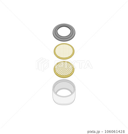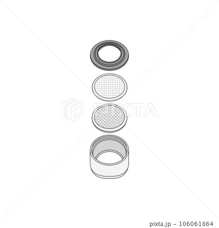 空っぽの泡沫キャップ(泡沫金具、蛇口の先端のキャップ)の線画