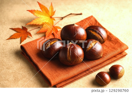 秋の味覚を楽しむ栗スイーツと季節素材 ほっこり温もり感じる画像セッ