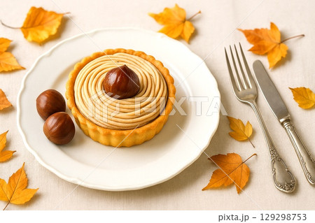 秋の味覚を楽しむ栗スイーツと季節素材 ほっこり温もり感じる画像セット