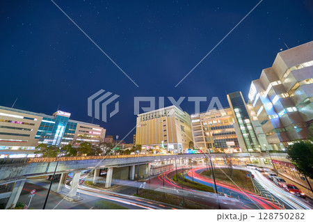 冬の神奈川県川崎市麻生区新百合ヶ丘駅南口(上麻生1丁目)と星(北極星,カシオペア座など)