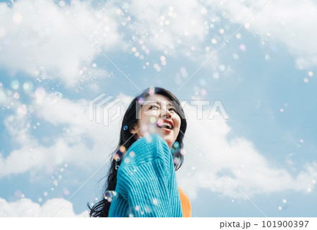 空を見上げる若い女性