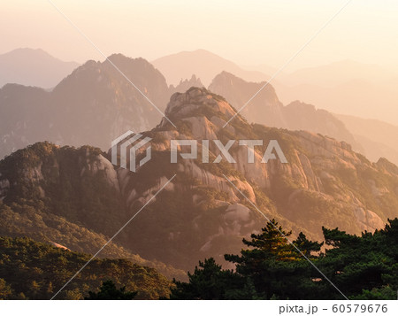 中国安徽省・黄山 夕方の光明頂からの眺め/ Huangshan (Yellow Mountains)
