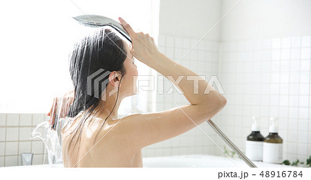 シャワーを浴びる女性