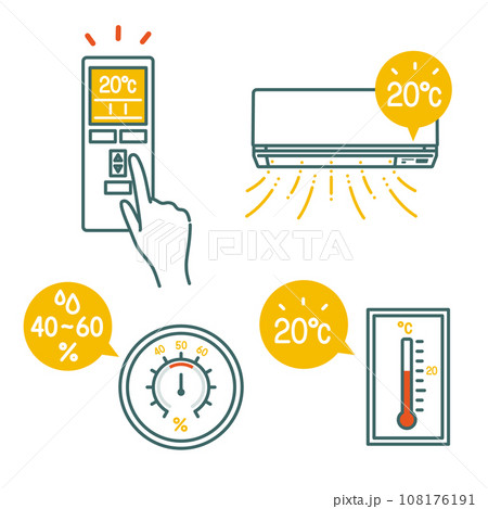冬のエアコン節電対策イラストセット(温度管理・湿度管理)