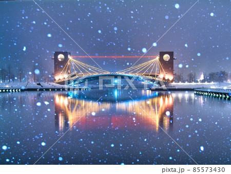 新横浜駅前の円形歩道橋 夜景 俯瞰 遠景