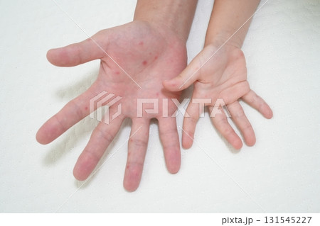 親子に見られる手足口病の発疹(医療・感染症啓発イメージ)