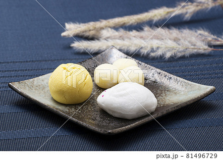 十五夜 月見饅頭 和菓子 お月見菓子 お供物 月見餅 イメージ素材