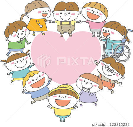 多様な子どもたちがつながるハートの輪|共生とやさしさのイラスト